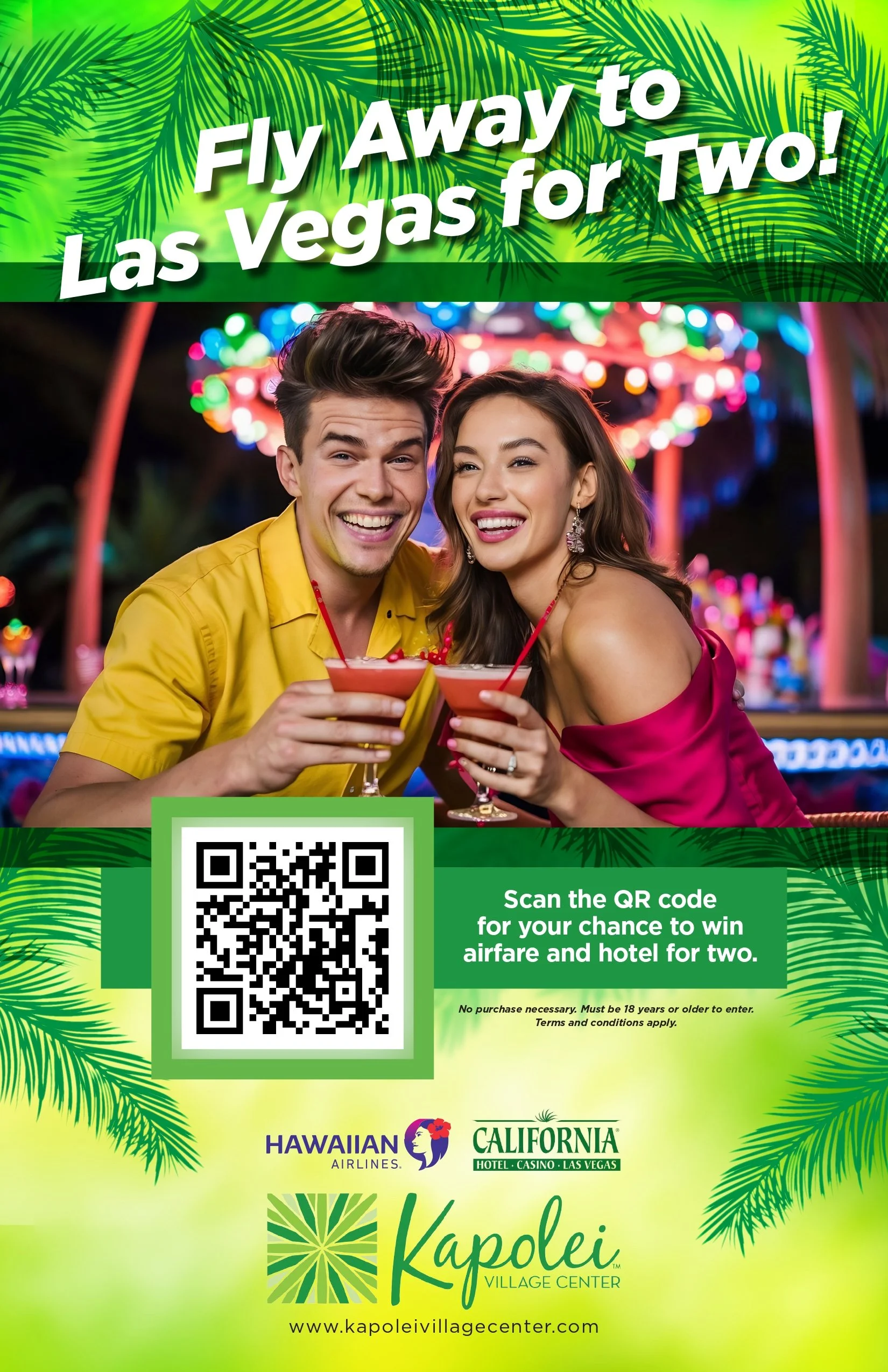 NO PURCHASE OR PAYMENT OF ANY KIND NECESSARY TO ENTER FOR A CHANCE TO WIN. A PURCHASE OR PAYMENT WILL NOT INCREASE AN ENTRANT’S CHANCES OF WINNING. Standard data rates may apply. To participate, you must be a legal U.S. resident of Hawaii, 21 years of age or older. Void where prohibited. Begins 12:00:00 a.m. HST, 1/19/26 and ends 11:59:59 p.m. HST, 12/31/26. Limit one (1) entry per person/email address per day. Entrant cannot participate solely by scanning code. To enter without incurring message or data charges or for official rules, prize description & odds disclosure, visit island985.iheart.com.